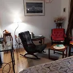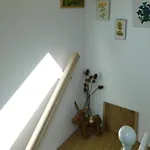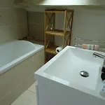 Här erbjuds utsikt över trädgården. I badrummet finns även en separat toalett och en dusch. Det finns badlakan och handdukar för gästernas komfort.